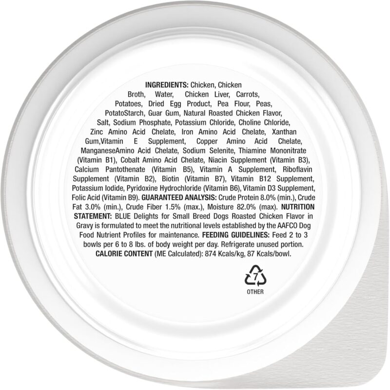 Blue Buffalo Delights Small Breed Natural Wet Dog Food, Rotisserie Chicken Flavor in Gravy, 3.5-oz Cups, 12 Count