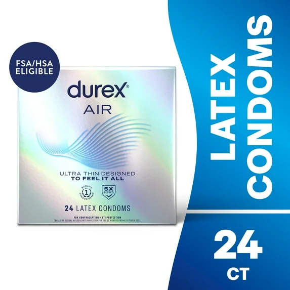 Durex Air Ultra Thin Condoms For Men, Rubber Latex Condoms with Silicone Lube, FSA/HSA, 24 ct
