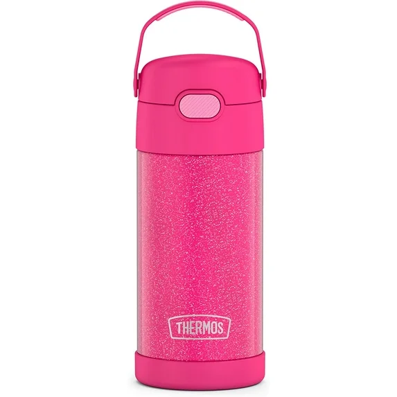 THERMOS FUNTAINER 12 Ounce Stainless Steel Vacuum Insulated Kids Straw Bottle, Pink Glitter