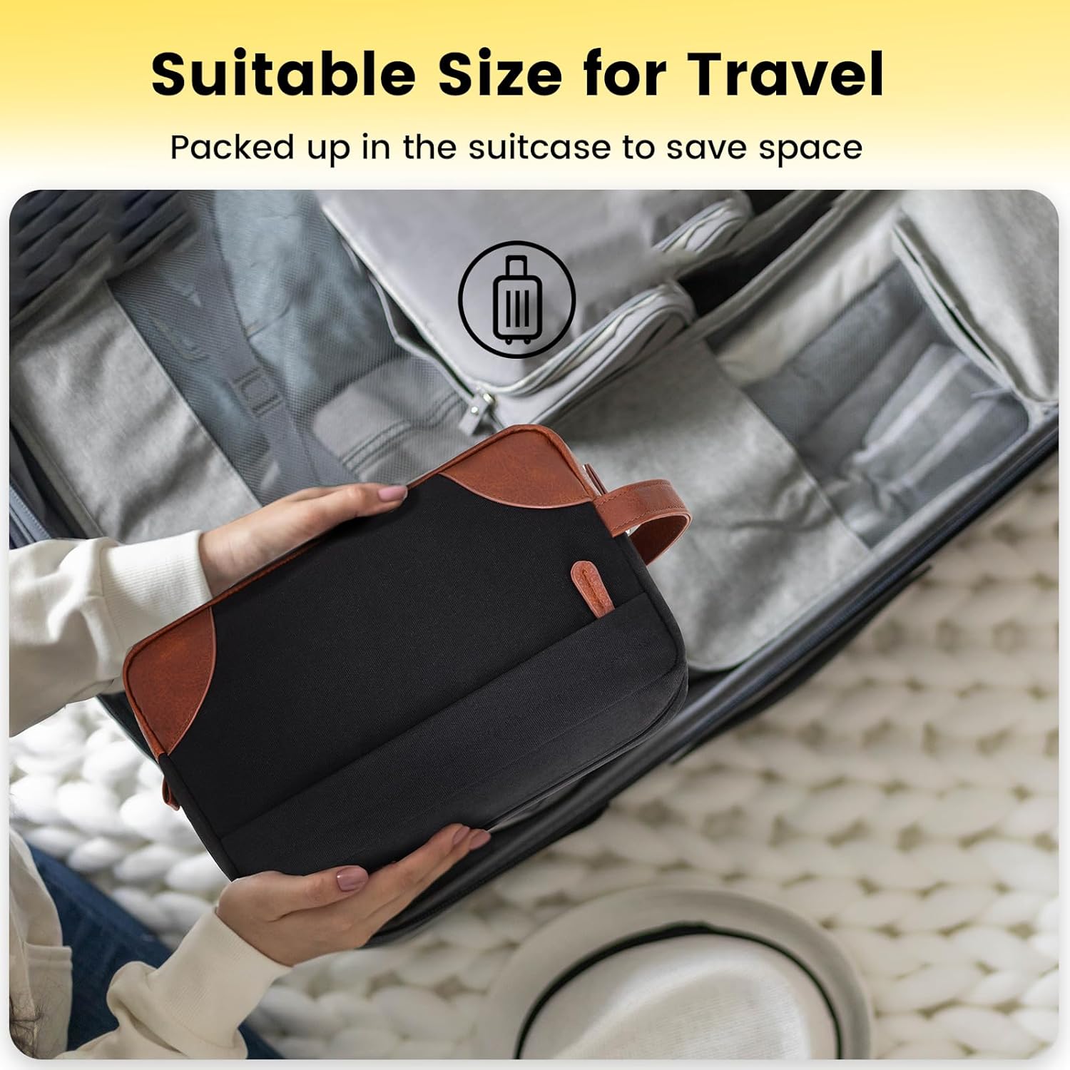 - Quality & water-resistant material: The toiletry travel bag is made of sturdy & wearable canvas material that has no unpleasant smell. The canvas and PU leather make the bag itself very well-constructed to keep the shape and protect your toiletries from splashed water